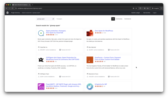 - And we have bunch of standalone, universal, all-in-one plugins like Zero Spam, OOPSpam, hCaptcha for WP which provide anti-spam protection for GiveWP as well. Here is a link to download one of them.
