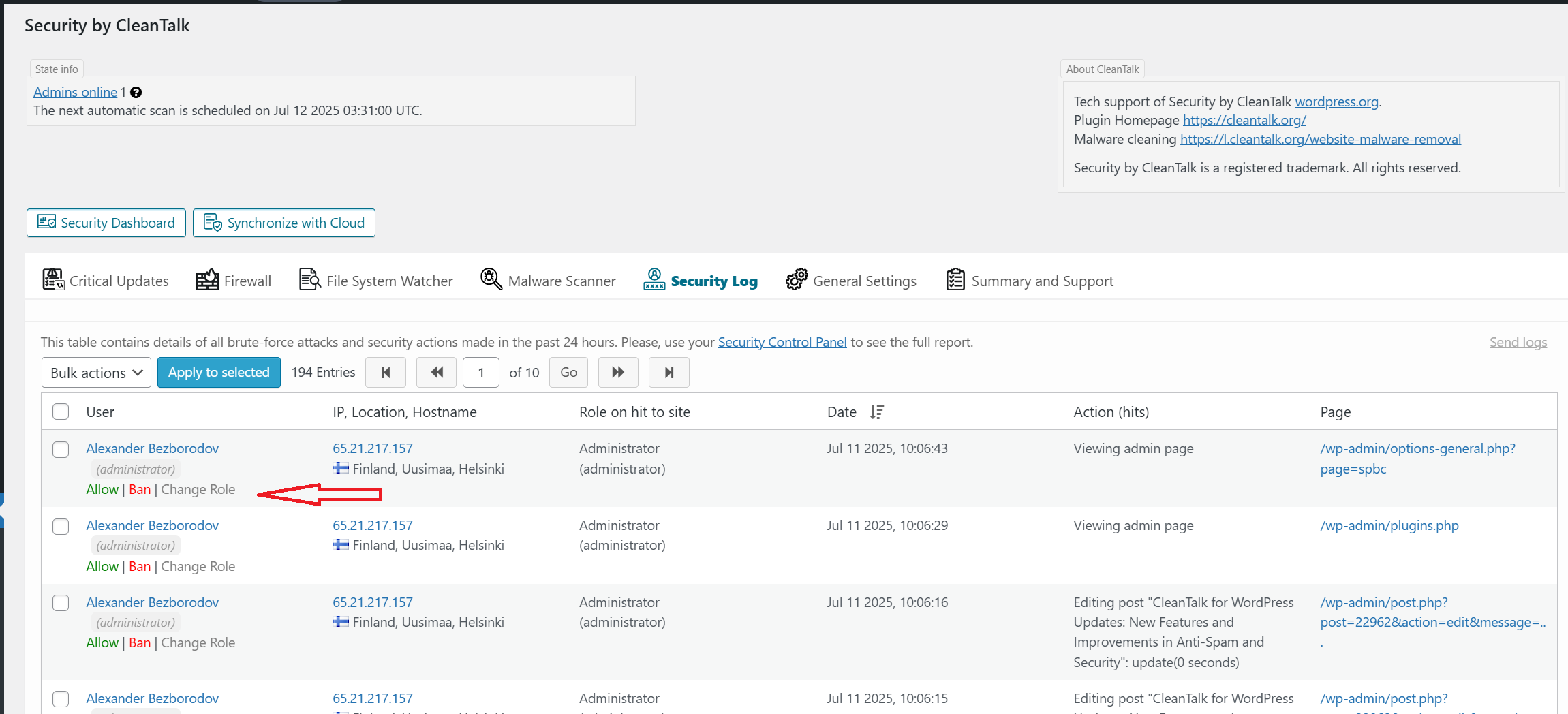 Security by CleanTalk Settings ‹ CleanTalk s blog — WordPress 07 11 2025 03 30 PM