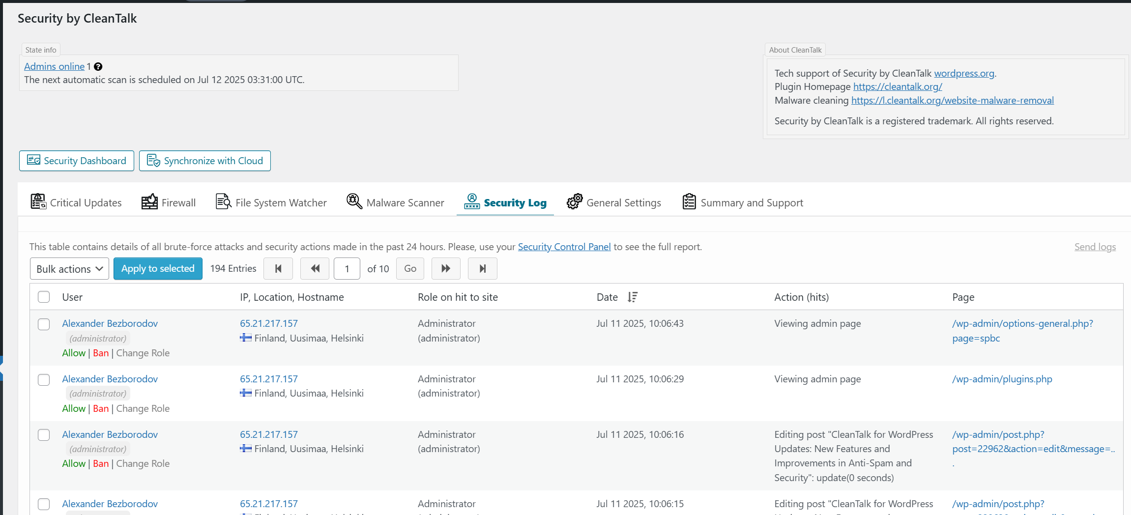 Security by CleanTalk Settings ‹ CleanTalk s blog — WordPress 07 11 2025 03 30 PM