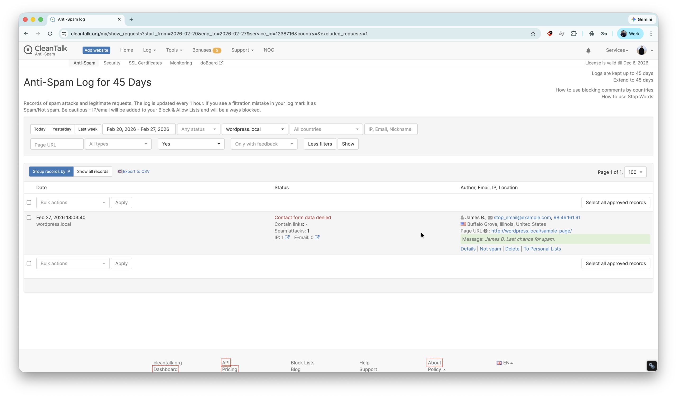 CleanTalk Account