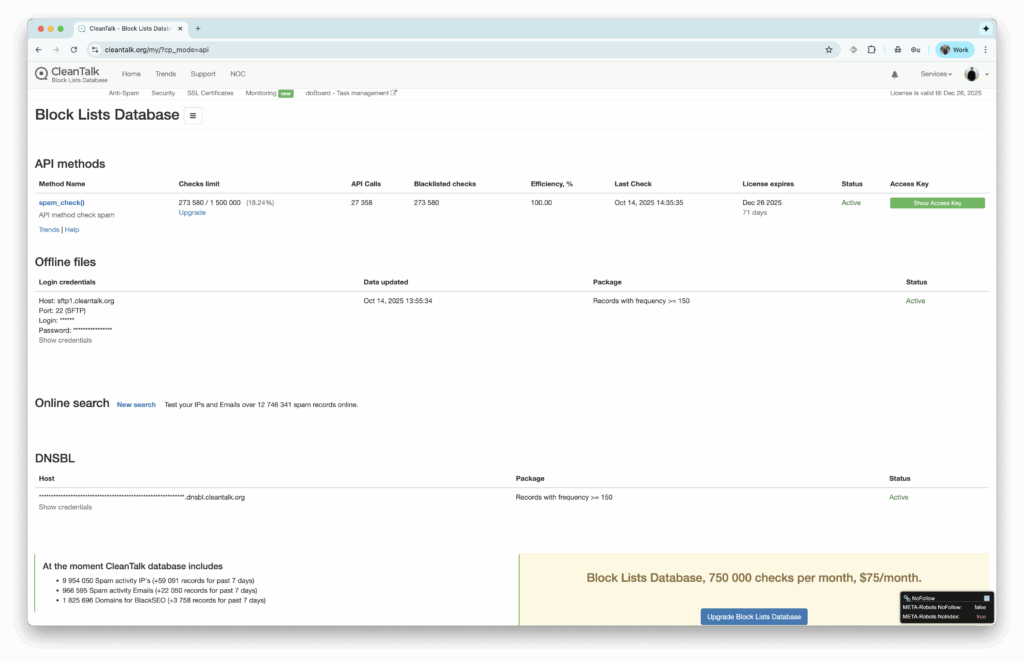 We are glad to announce that we have launched a free tier of our Block Lists Database! https://cleantalk.org/price-database-api