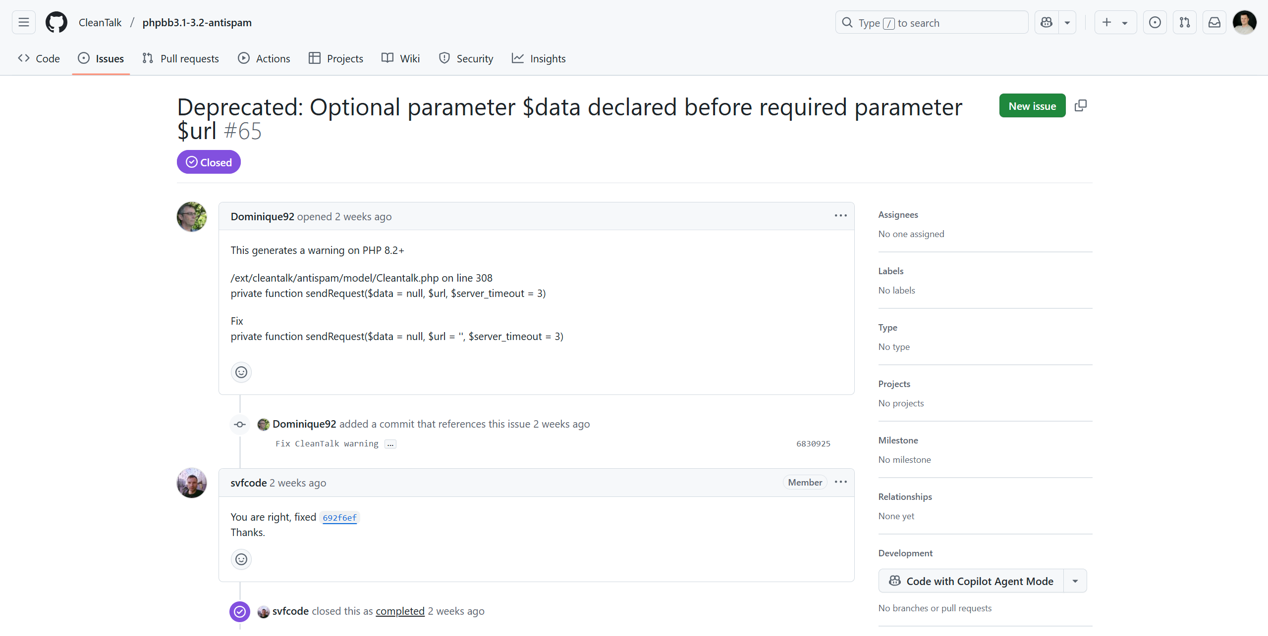 Deprecated Optional parameter data declared before required parameter url · Issue 65 · CleanTalk phpbb3 1 3 2 antispam 04 28 2025 04 29 PM