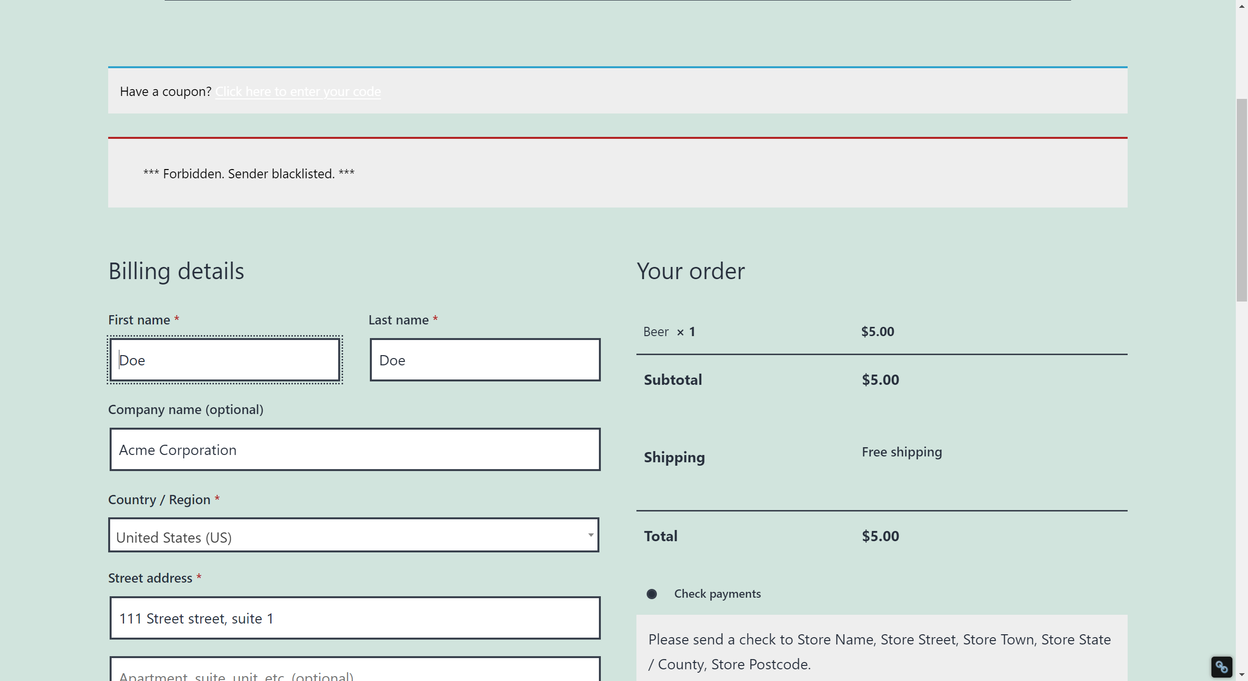 Checkout – demo3 cleantalk me1