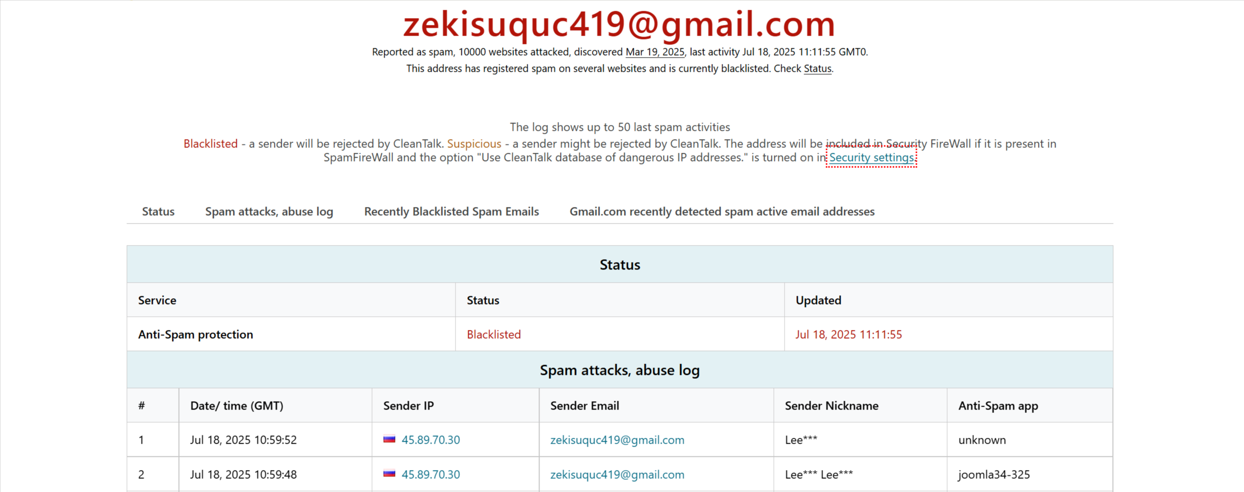 zekisuquc419 gmail com Email spam report 07 21 2025 10 48 AM